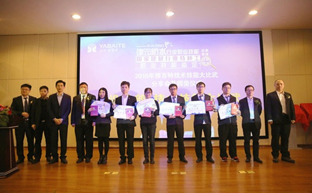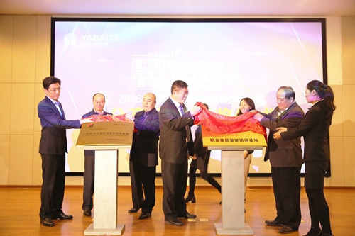 活動最后,在陣陣鞭炮聲中,各位領導和雅百特員工共同見證了“建筑防水行業職業技能培訓基地”、“國家建材行業特種工職業技能鑒定培訓基地”的掛牌儀式。自此,全國首家“建筑防水行業職業技能培訓基地”、“國家建材行業特種工職業技能鑒定培訓基地”正式掛牌成立。