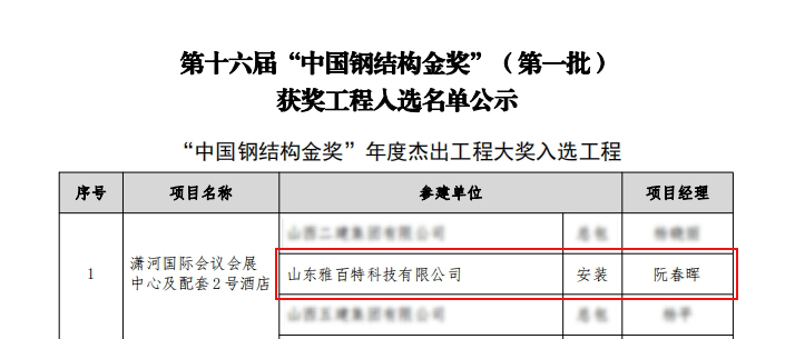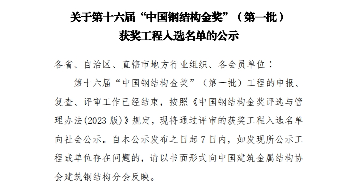 “中國鋼結(jié)構(gòu)金獎”年度杰出工程大獎入選工程