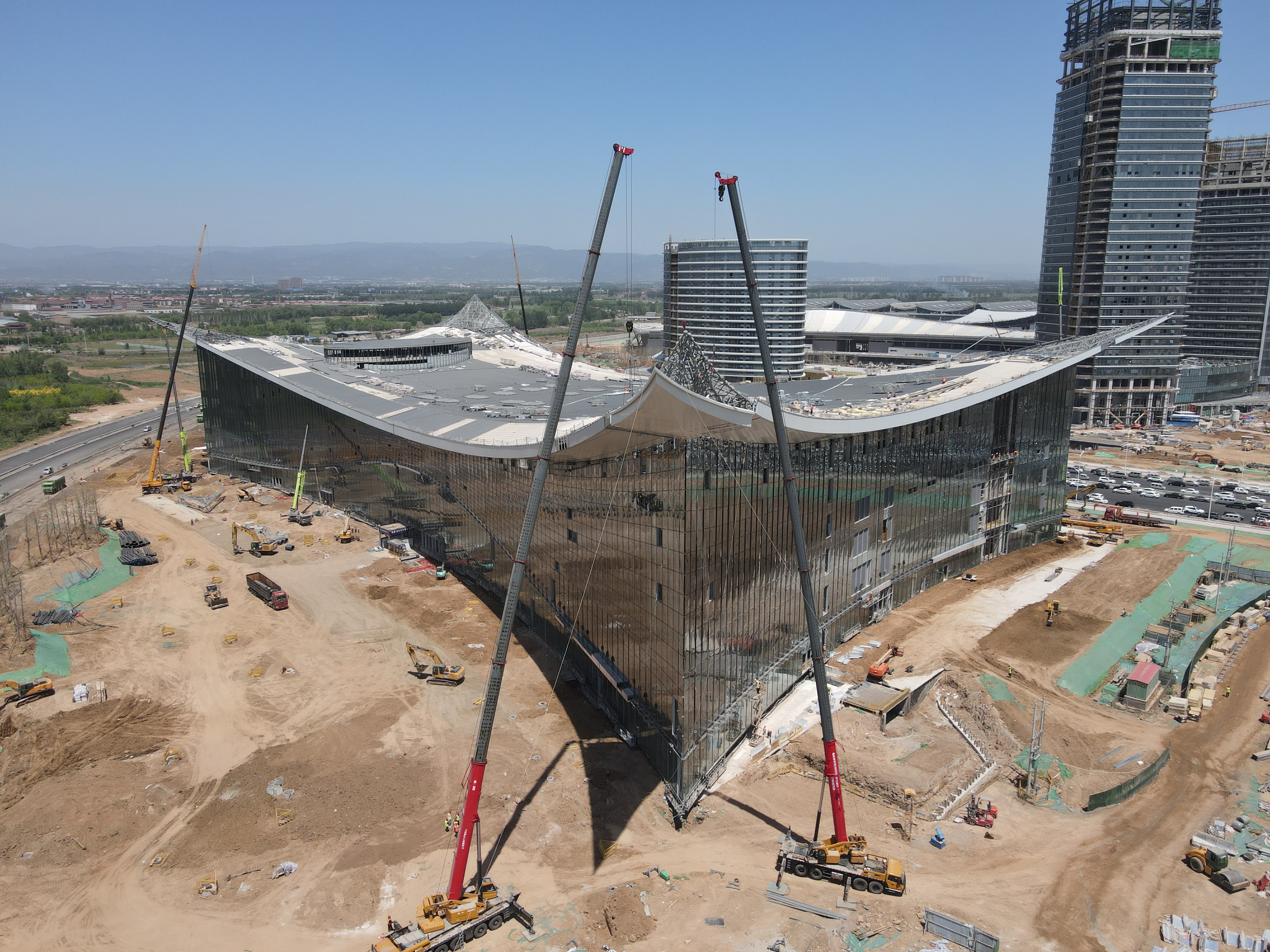 瀟河國際會議會展中心位于山西轉(zhuǎn)型綜合改革示范區(qū)瀟河產(chǎn)業(yè)園區(qū)內(nèi),總建筑面積超過10萬平方米,會議中心大型劇院式會場、國際會議廳、宴會廳等設(shè)施一應(yīng)俱全,滿足各類國際大型會議的需求,是太原市高規(guī)格、高標(biāo)準(zhǔn),集會議、會展、商務(wù)、住宿、餐飲、娛樂等于一體的國際會展中心綜合體。其結(jié)構(gòu)形式為混凝土框架結(jié)構(gòu)建筑,屋面采用金屬屋面系統(tǒng)。