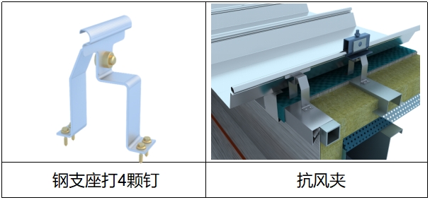在加密區(qū)內(nèi),鋼支座通過四顆自攻螺釘牢固連接幾字型襯檁,確保連接穩(wěn)固,有效抵抗風(fēng)力帶來的動態(tài)荷載。屋面鋪設(shè)方面,則選用了2.4mm厚的鍍鋅鋼板肋固定夾,顯著增強了屋面板的抗風(fēng)揭性能,為建筑物提供了更加可靠的防護。