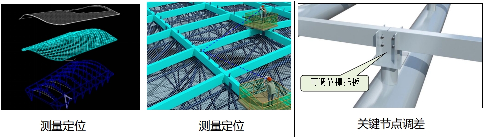 在項目的建設(shè)過程中,針對屋面網(wǎng)架結(jié)構(gòu)可能會出現(xiàn)的下?lián)犀F(xiàn)象,項目團隊在深化設(shè)計階段采用犀牛軟件進行屋面三維表皮建模,確保建筑外輪廓的造型;同時與鋼結(jié)構(gòu)模型進行了嚴(yán)格的對比驗證,及時調(diào)整鋼結(jié)構(gòu)尺寸和外皮模型,以避免任何潛在的模型誤差對建筑外觀尺寸造成影響。在施工過程中,利用檁托、鋼支座等工具,逐步校正鋼結(jié)構(gòu)與屋面施工的誤差,以確保屋面造型的精準(zhǔn)呈現(xiàn)。這些措施有效地消除了屋面結(jié)構(gòu)沉降對造型的潛在影響,保證了屋面造型的完美展現(xiàn)。